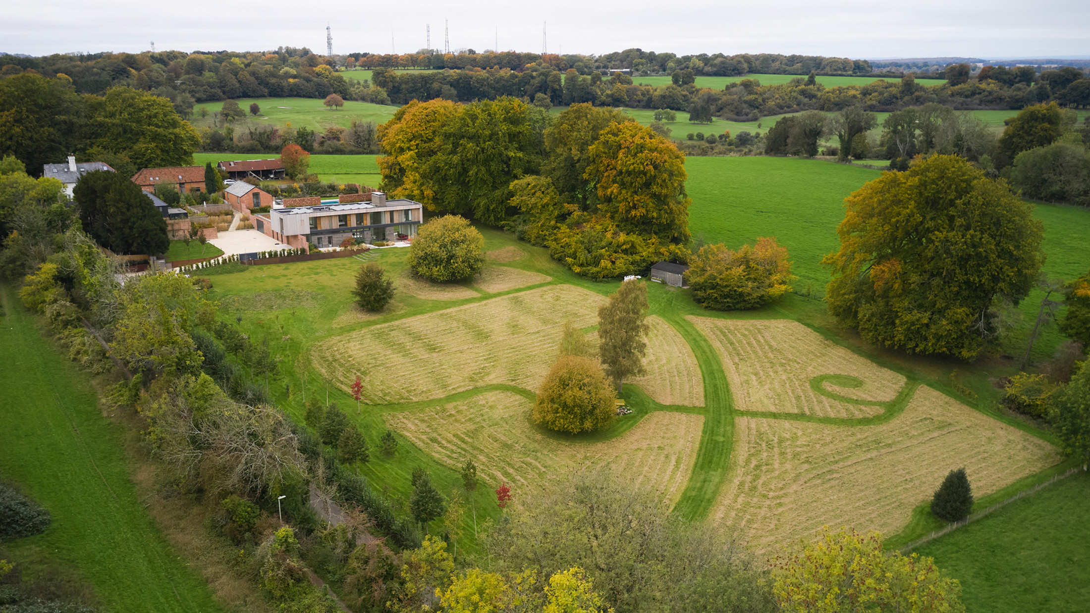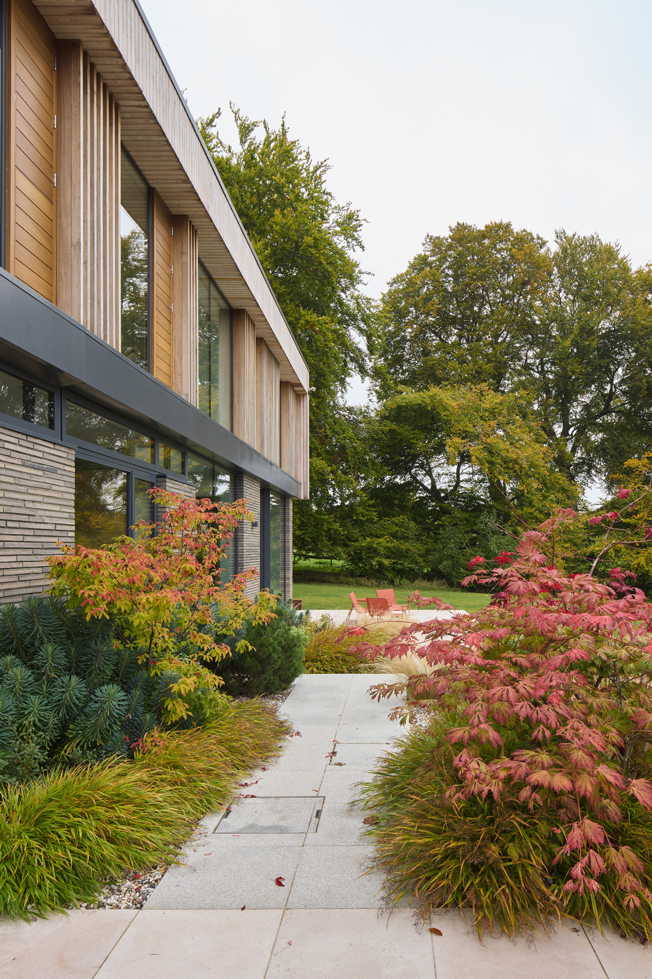 The landscape around the house is to be returned to a more natural form, removing the existing extensive mown grass areas in favour of meadowlike grassland and indigenous planting.